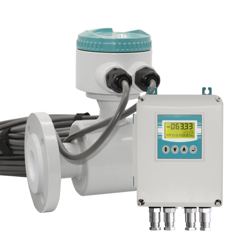 เครื่องวัดการไหลของแม่เหล็กไฟฟ้า PTFE +/-0.5% Fs 4-20mA RS485 OEM พร้อมหน้าแปลนสำหรับตรวจสอบการไหลของของเหลวและของเหลวในการบำบัดน้ำ